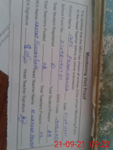 | Certified that this School was Inspected by the Undersigned MEA/DMO Today and the Information Stated Above is as Per Record. | |||||