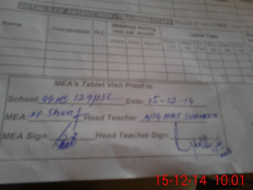 | Attendance Register | Head Teacher | MEA with School | Visit Proof |