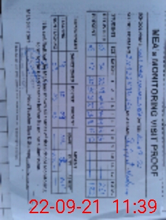 | Monitoring Date: 22-09-2021 | Start Time: 22-09-2021 10:30 AM | End Time: 22-09-2021 11:41 AM | Name of MEA: Sh**** Na**** | |