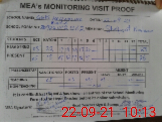 | Attendance Register | Head Teacher | MEA with School | Visit Proof |