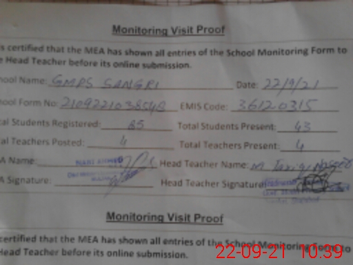 | EMIS Code: 36120315 | Name of School: GMPS SANGRI SHUJABAD DISTT. MULTAN | |||