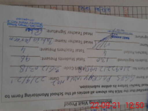 | Name: Ta**** Pe**** Designation: (School Headmaster's/Headmistress's) ESE (Sc. Math) Phone/Cell Number: 03**** |