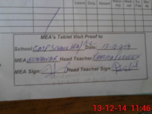 | Attendance Register | Head Teacher | MEA with School | Visit Proof |