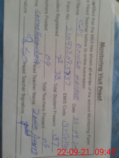 | EMIS Code: 31150140 | Name of School: GPS BUNGA MACHI | |||