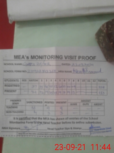 | Certified that this School was Inspected by the Undersigned MEA/DMO Today and the Information Stated Above is as Per Record. | |||||