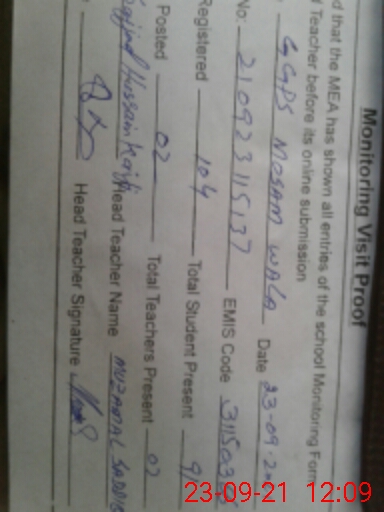 | EMIS Code: 31150366 | Name of School: GGPS MOSAM WALA | |||