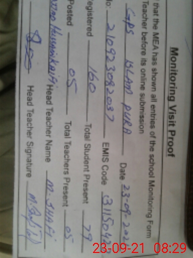 | EMIS Code: 31150427 | Name of School: GPS ISLAM PURA | |||