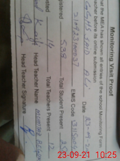 | EMIS Code: 31150043 | Name of School: GGHS SAID ALI | |||