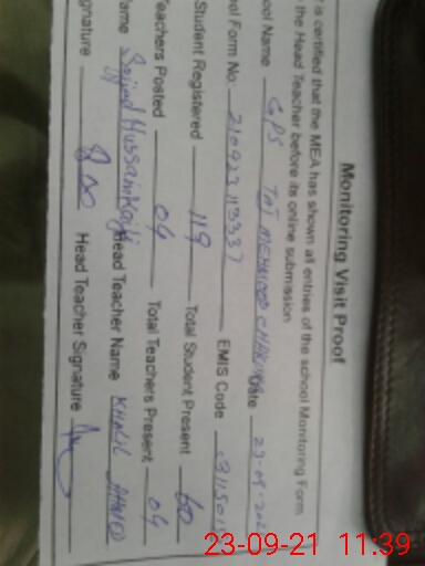 | EMIS Code: 31150150 | Name of School: GPS TAJ MEHMOOD CHAKUKA | |||
