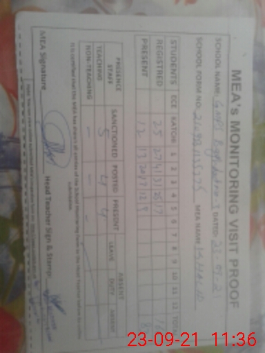 | Monitoring Date: 23-09-2021 | Start Time: 23-09-2021 09:47 AM | End Time: 23-09-2021 11:37 AM | Name of MEA: Kh**** Me**** | |
