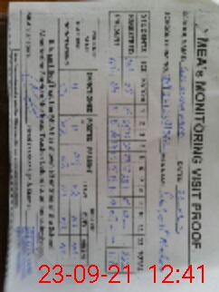 | Monitoring Date: 23-09-2021 | Start Time: 23-09-2021 11:39 AM | End Time: 23-09-2021 12:43 PM | Name of MEA: Sh**** Na**** | |