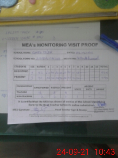 | Certified that this School was Inspected by the Undersigned MEA/DMO Today and the Information Stated Above is as Per Record. | |||||
