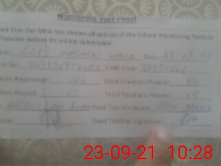 | Attendance Register | Head Teacher | MEA with School | Visit Proof |