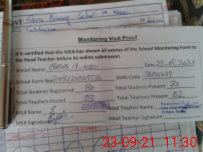 | Attendance Register | Head Teacher | MEA with School | Visit Proof |