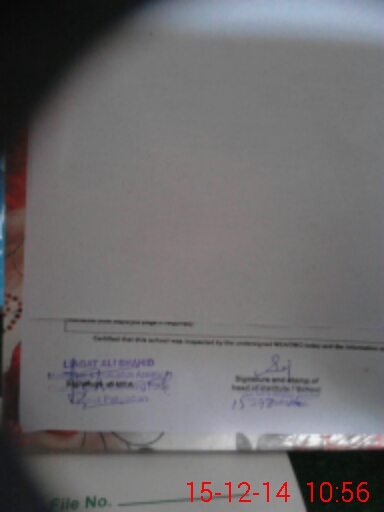 | Certified that this School was Inspected by the Undersigned MEA/DMO Today and the Information Stated Above is as Per Record. | |||||