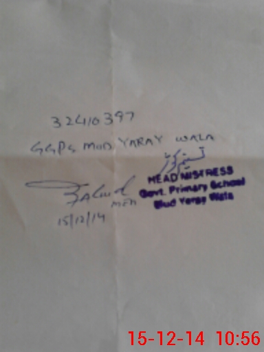 | EMIS Code: 32410397 | Name of School: GGPS MUD YARAY WALA | |||