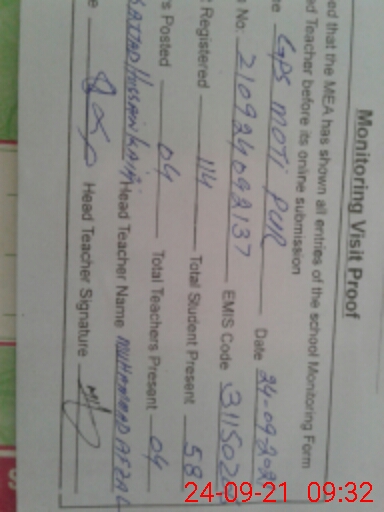 | EMIS Code: 31150206 | Name of School: GPS MOTI PUR | |||