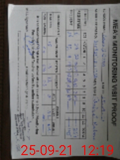 | Monitoring Date: 25-09-2021 | Start Time: 25-09-2021 11:04 AM | End Time: 25-09-2021 12:19 PM | Name of MEA: Sh**** Na**** | |