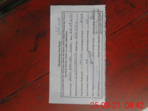 | Attendance Register | Head Teacher | MEA with School | Visit Proof |