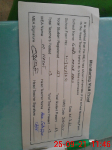 | Certified that this School was Inspected by the Undersigned MEA/DMO Today and the Information Stated Above is as Per Record. | |||||