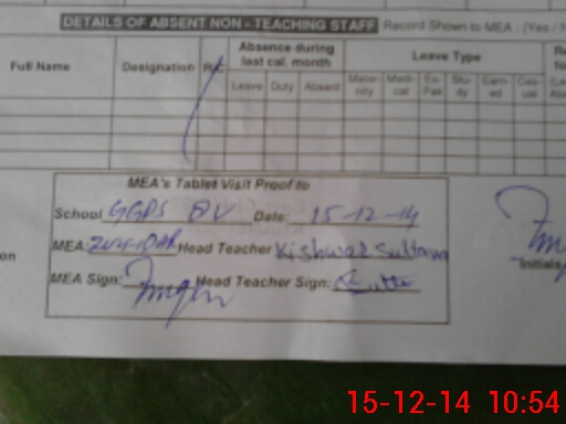 | Attendance Register | Head Teacher | MEA with School | Visit Proof |