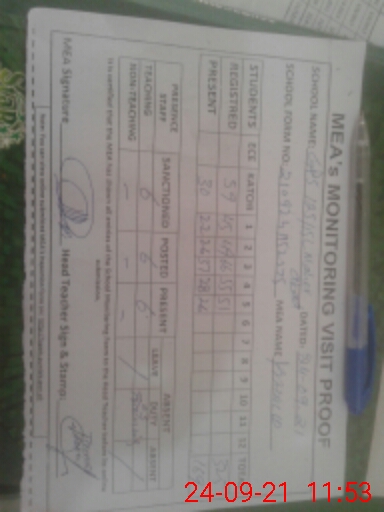 | Monitoring Date: 24-09-2021 | Start Time: 24-09-2021 10:24 AM | End Time: 24-09-2021 11:55 AM | Name of MEA: Kh**** Me**** | |