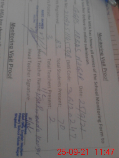 | Certified that this School was Inspected by the Undersigned MEA/DMO Today and the Information Stated Above is as Per Record. | |||||
