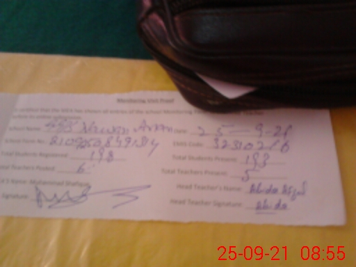| Attendance Register | Head Teacher | MEA with School | Visit Proof |