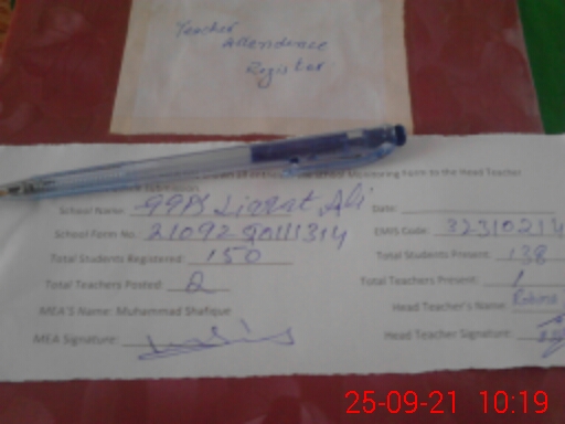 | Attendance Register | Head Teacher | MEA with School | Visit Proof |