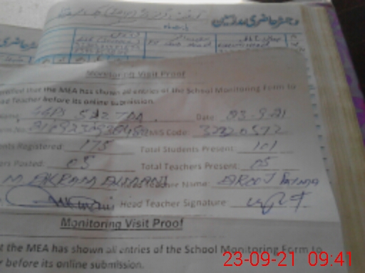 | Certified that this School was Inspected by the Undersigned MEA/DMO Today and the Information Stated Above is as Per Record. | |||||