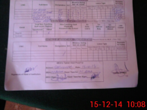 | Attendance Register | Head Teacher | MEA with School | Visit Proof |
