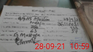 | Monitoring Date: 28-09-2021 | Start Time: 28-09-2021 10:41 AM | End Time: 28-09-2021 11:16 AM | Name of MEA: GH**** MU**** | |
