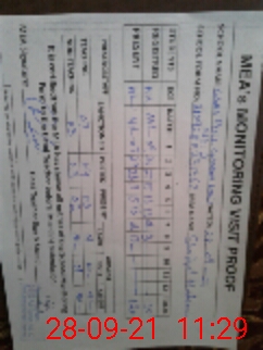 | Monitoring Date: 28-09-2021 | Start Time: 28-09-2021 10:28 AM | End Time: 28-09-2021 11:34 AM | Name of MEA: Sh**** Na**** | |