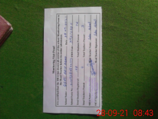 | Attendance Register | Head Teacher | MEA with School | Visit Proof |
