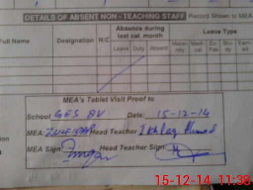 | Attendance Register | Head Teacher | MEA with School | Visit Proof |