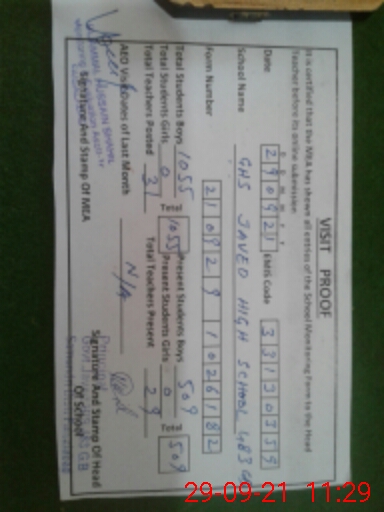 | EMIS Code: 33130359 | Name of School: GHS JAVAID CHAK 483 GB | |||