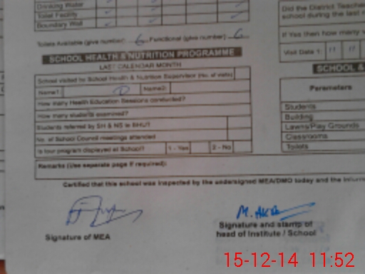 | Certified that this School was Inspected by the Undersigned MEA/DMO Today and the Information Stated Above is as Per Record. | |||||