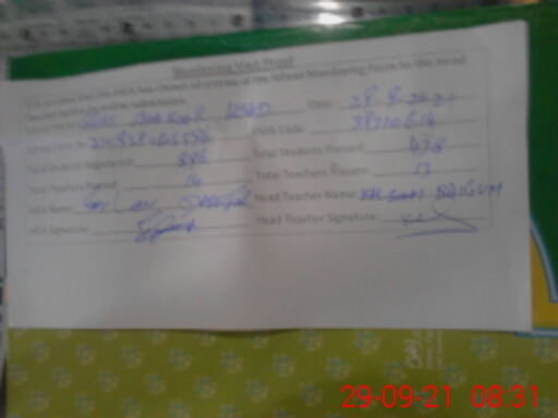 | Attendance Register | Head Teacher | MEA with School | Visit Proof |