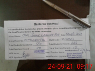 | Certified that this School was Inspected by the Undersigned MEA/DMO Today and the Information Stated Above is as Per Record. | |||||