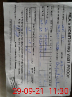 | Monitoring Date: 29-09-2021 | Start Time: 29-09-2021 10:11 AM | End Time: 29-09-2021 11:31 AM | Name of MEA: Sh**** Na**** | |