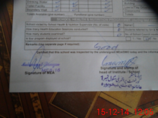 | Certified that this School was Inspected by the Undersigned MEA/DMO Today and the Information Stated Above is as Per Record. | |||||