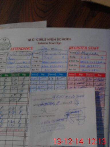 | Attendance Register | Head Teacher | MEA with School | Visit Proof |
