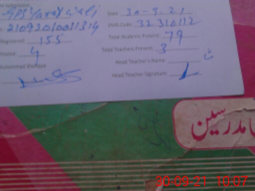 | Name: MU**** NA**** Designation: (School Headmaster's/Headmistress's) PST Phone/Cell Number: 03**** |