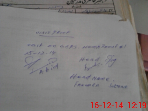 | Attendance Register | Head Teacher | MEA with School | Visit Proof |