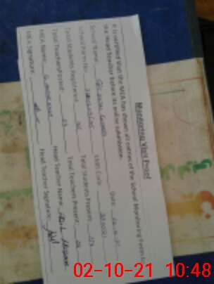 | Attendance Register | Head Teacher | MEA with School | Visit Proof |