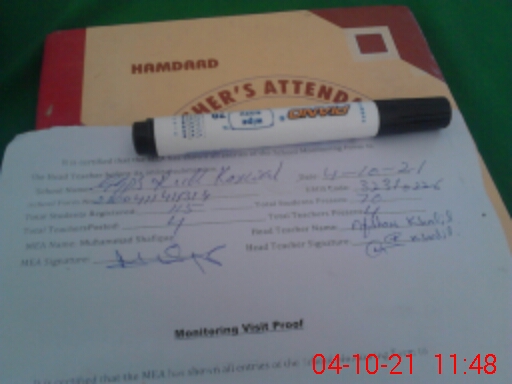 | Attendance Register | Head Teacher | MEA with School | Visit Proof |