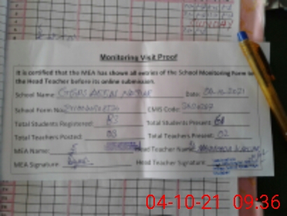 | Attendance Register | Head Teacher | MEA with School | Visit Proof |