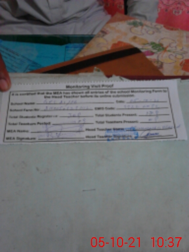 | Certified that this School was Inspected by the Undersigned MEA/DMO Today and the Information Stated Above is as Per Record. | |||||