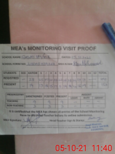 | Attendance Register | Head Teacher | MEA with School | Visit Proof |