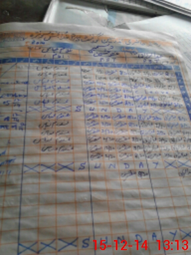 | CNIC | Full Name | Designation | R/C | Absence During Last Calender Month |